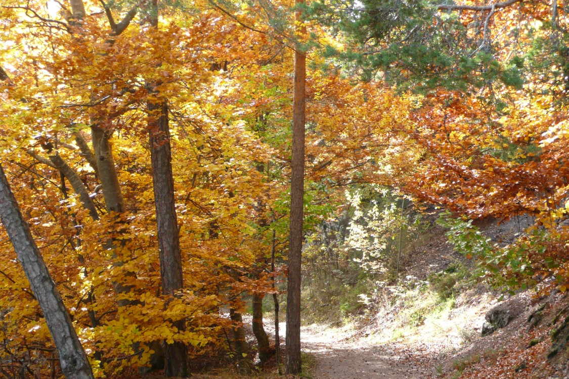 HerbstwaldwegWeg 24 von Lengmoos zu den Erdpyramiden bei Maria Saal auf dem Ritten, nördlich von Bozen. |
