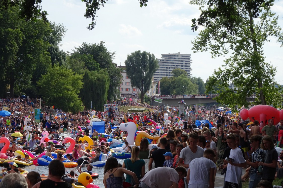 DonaurutscheViele Rutschen waren schwimmend unterwegs und boten für Akteure und Zuschauer Spaß. |