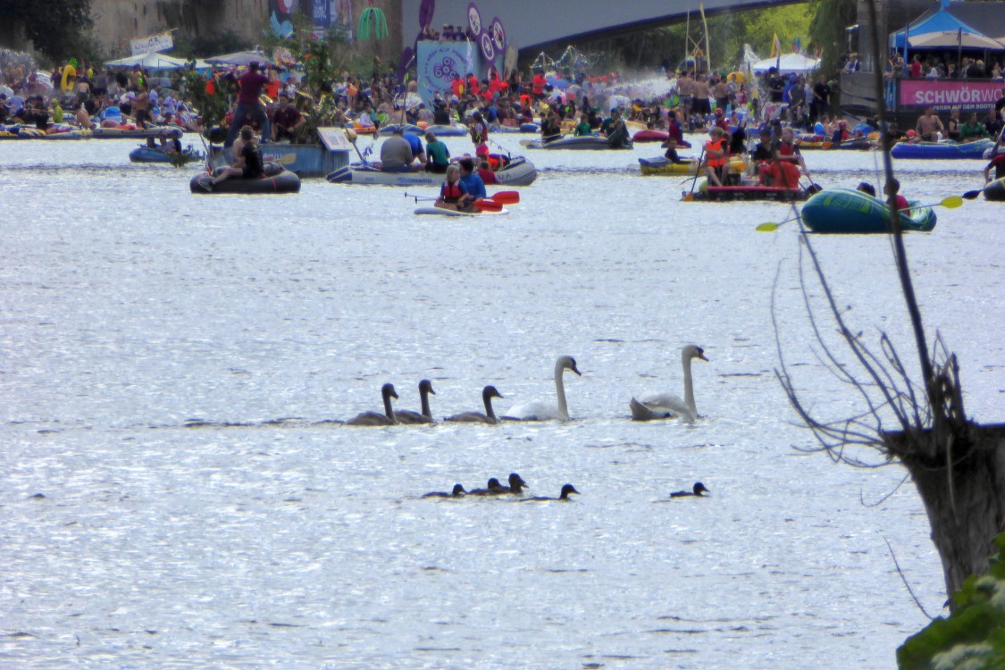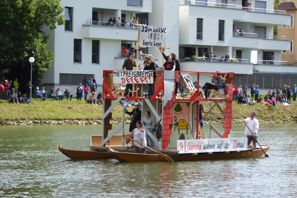 ZuschauerbrückeDie spritz-sichersten Plätze sind auf den Donaubrücken - und man hat einen schönen Blick auf das "Getümmel". |