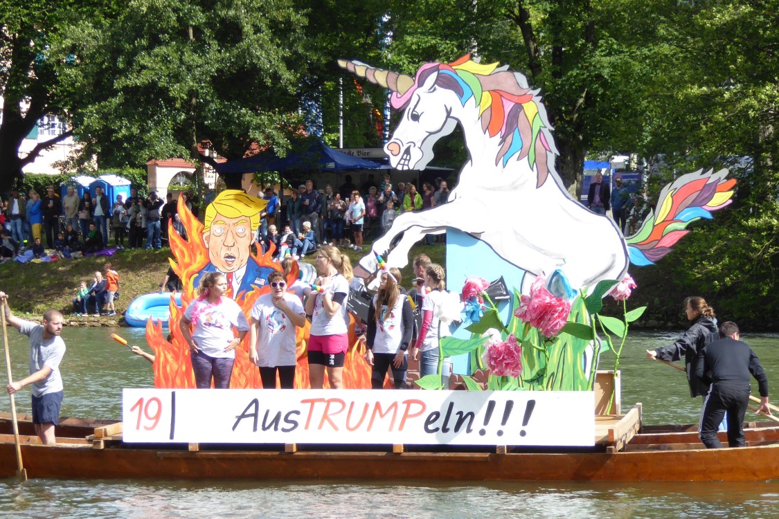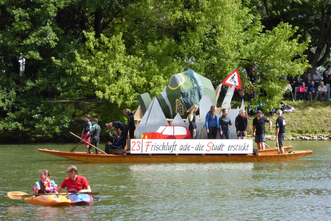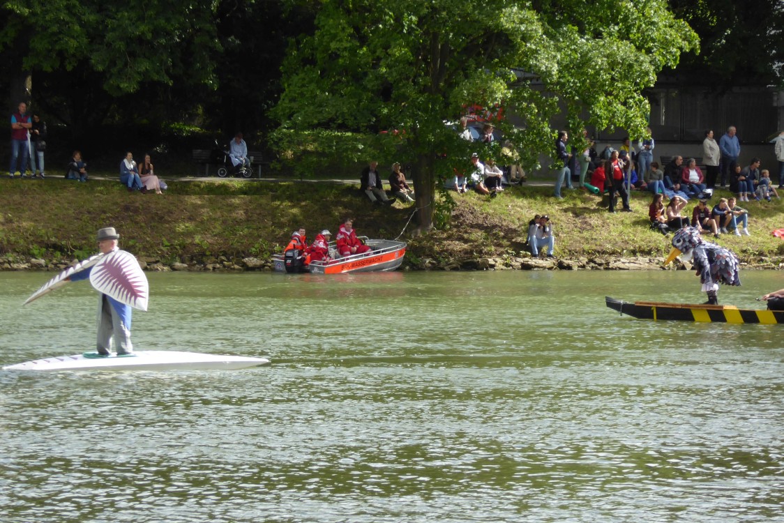 Dieses Jahr kam die Sonne genau passend zum Beginn heraus und wärmte die Nabader in der 19 Grad kalten Donau. Die Weltpolitik und Lokalpolitik steuerten genügend Ideen für die Mottofähren bei. Auf dem Wasser gab's wieder viele wilde Nabader. Lassen Sie sich durch die Bilderschau vom Charme des Tages einfangen.
