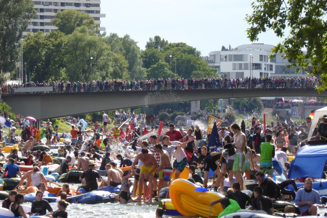 Nach alter Tradition wird in Ulm am Schwörmontag, dem vorletzten Montag im Juli, das Nabada, der lokale "Nationalfeiertag", ausgiebig gefeiert.