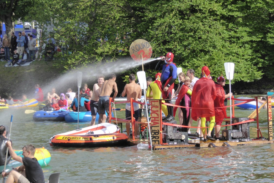 PiratenGegen Ende des Nabada spritzen sich die Teilnehmer gegenseitig nass, und wenn man nicht aufpasst, bekommt man auch als Zuschauer am Ufer etwas davon ab. |